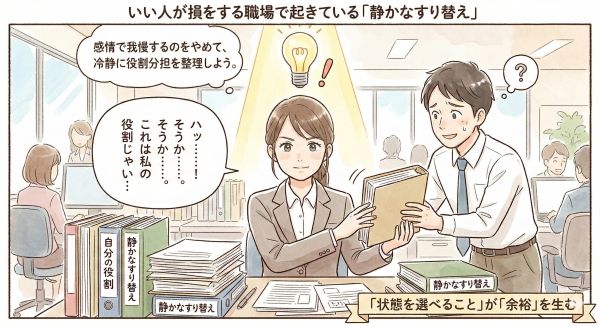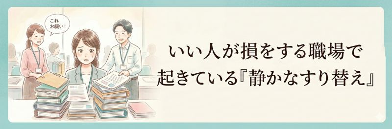 この記事では、いい人が損をし続ける職場で「静かに起きているすり替え」の構造を整理していきます。