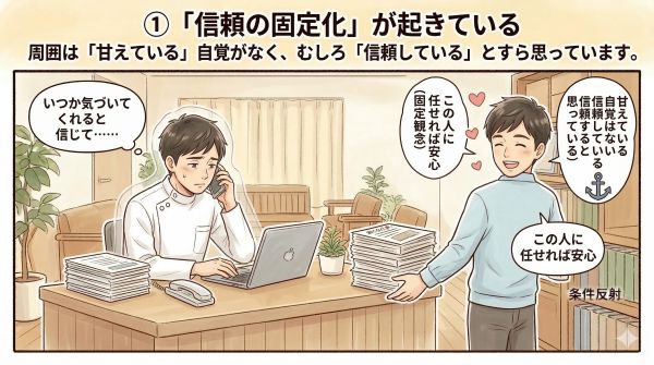 最初は信頼として嬉しかったその認識が、やがて「当然そうしてくれる人」という固定イメージになっていきます。