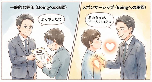 多くの人が「承認」を「褒めること(評価)」だと考えています。しかし、スポンサーシップはそれよりもずっと深いレベルの関わりです。