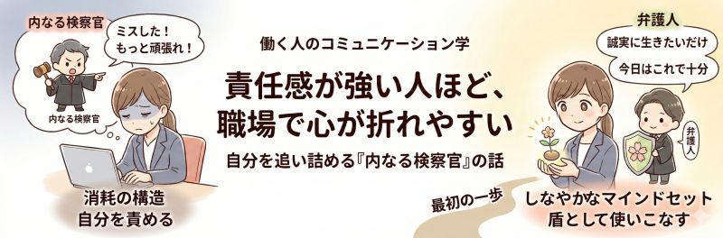 この記事では、責任感の強い人が職場で消耗しやすくなる構造と、自分を責め続ける「内なる声」との付き合い方を、静かに整理していきます。