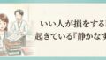 「あなただから頼んだ」——その言葉に何度も応え続けて、じわじわと消耗していませんか?いい人が損をする職場では、誰も悪意を持っていないのに「静かなすり替え」が起きています。その構造を知ることが、消耗から抜け出す最初の一歩になります。