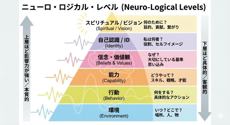 しかし、NLP(神経言語プログラミング)には、こうした問題を根本から解決するための強力なフレームワークがあります。それが、ロバート・ディルツ氏が提唱した「ニューロ・ロジカル・レベル」です。