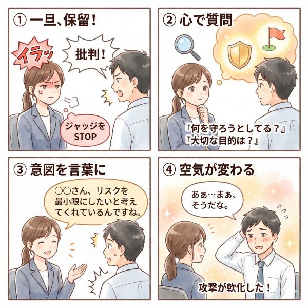 視点の変化: 批判を「攻撃」ではなく「リスク管理の提案」として捉え直すと、「Aさんはプロジェクトの成功を誰より願っている」という側面が見えてきます。