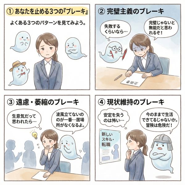 隠れたブレーキの声: 「今のままでも生活はできている。新しいことを始めて失敗したら、今の安定さえ失うぞ。」