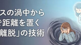 ストレスの渦中にいるとき、「冷静になれ」という言葉は届きません。必要なのは、感情に飲み込まれた「渦の中」から一歩外に出ること。自分を三人称で眺める「幽体離脱」の視点が、悩みをただの事象に変えるNLPの技術を、具体的な手順とともに静かに整理します。